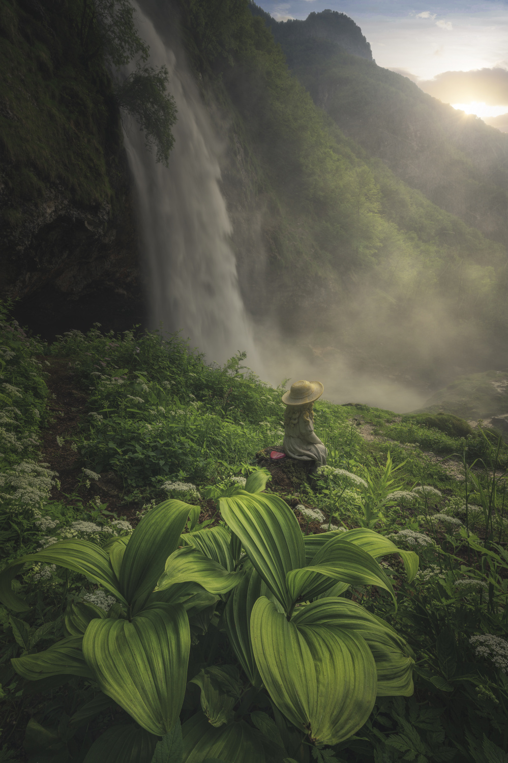 It was one of the most difficult photos to take, due to the prohibitive climatic conditions. I know the place very well, I know that in mid-June the water flow is considerable due to the melting of the snow. I had studied the parable of the sun, but I did not imagine finding such a strong wind. The water vapour of the waterfall was very intense, it bathed everything at a distance of several meters. I had very little time to be able to catch the sun in the right place. When I opened the raws on the pc I was very nervous because I did not know if I was able to take any successful photos. After all the post production work, I can say that I am satisfied.