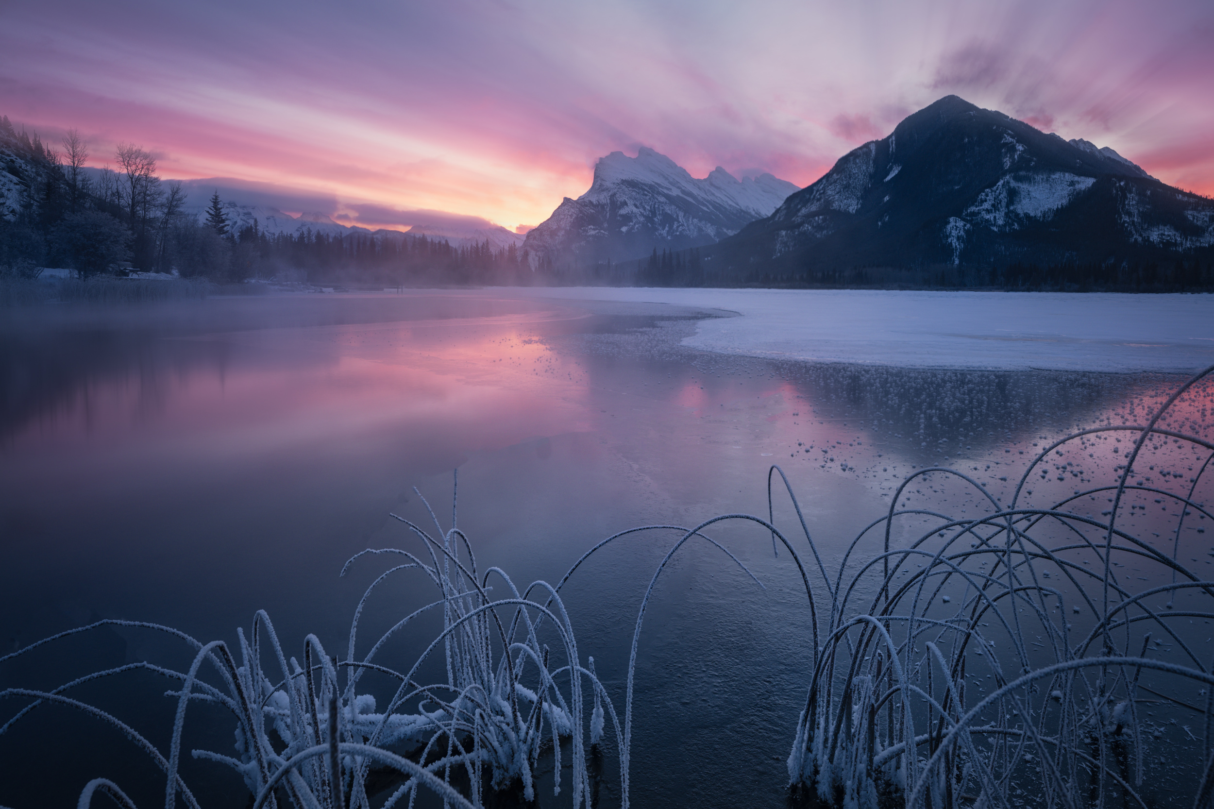 As a professional landscape photographer, I believe one must have a thorough understanding of natural elements such as wind, frost, rain and snow, as well as the ability to predict weather conditions using various forecasting tools. Only then can they have a clear idea of the scenes they can capture. As the saying goes, a photographer must "read the language of nature". All natural phenomena - wind, frost, rain, snow and weather changes - are essentially nature's way of communicating with man. A landscape photographer must understand and interpret these changes in order to make his shooting plans relatively successful or to have a reasonably accurate prediction in advance. For example, in winter in Banff National Park, you need to know what scenes to expect at certain locations when temperatures drop below -20°C, such as ice formations, snowdrifts, frost-covered trees and other extreme landscapes caused by the severe cold.