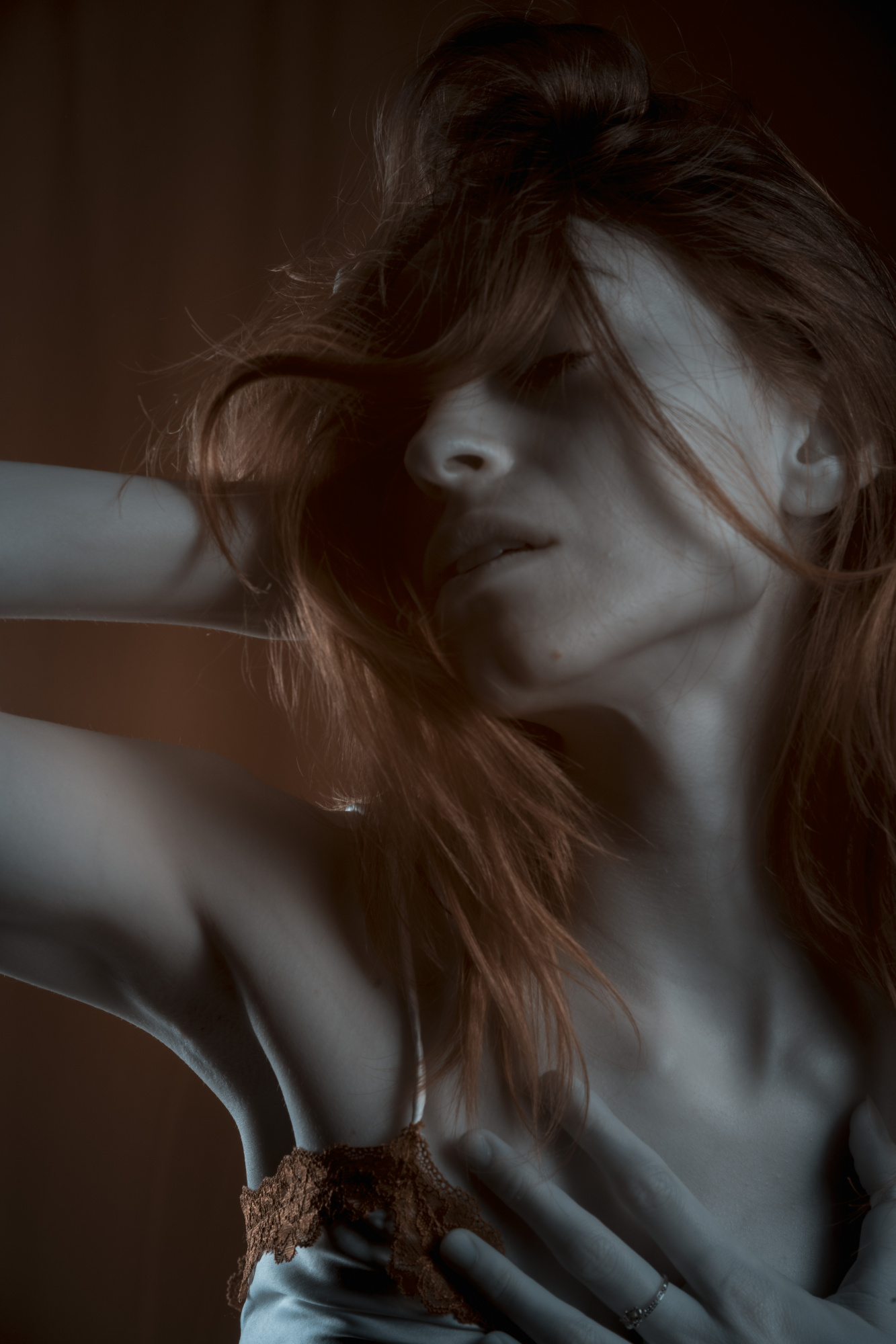 The model must feel comfortable. I talk to the model a lot before and during the shoot. The choice of music is important. I always play what she wants to hear, according to the style of the shoot. For a portrait of a young girl, for example, she asked me to play Coldplay. We started with that, but then it turned into a Mozart Requiem.